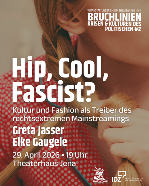 Wie funktioniert diese kulturelle Tarnung? Welche Bilder, Codes und Sehnsüchte werden gekapert und warum wirkt das so gut? Darüber spricht Maik Fielitz (IDZ Jena) mit unseren Gästen. Ein Abend über Stil als Strategie, Ästhetik als Waffe und die Frage, wie widerständig Kultur sein kann.
